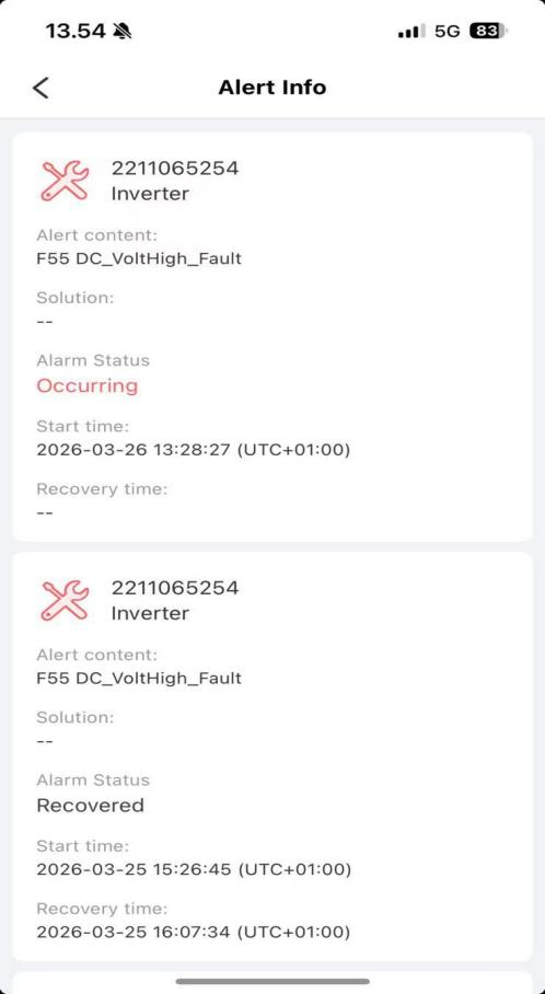 この場合、住宅用太陽光発電貯蔵システムは、日中の高日射量時間帯に繰り返し輸出を停止しました。遠隔監視により警報が発生しました。 3人は - サイトのスクリーンショットは完全な証拠チェーンを形成し、核心的な問題を明確に示しています。