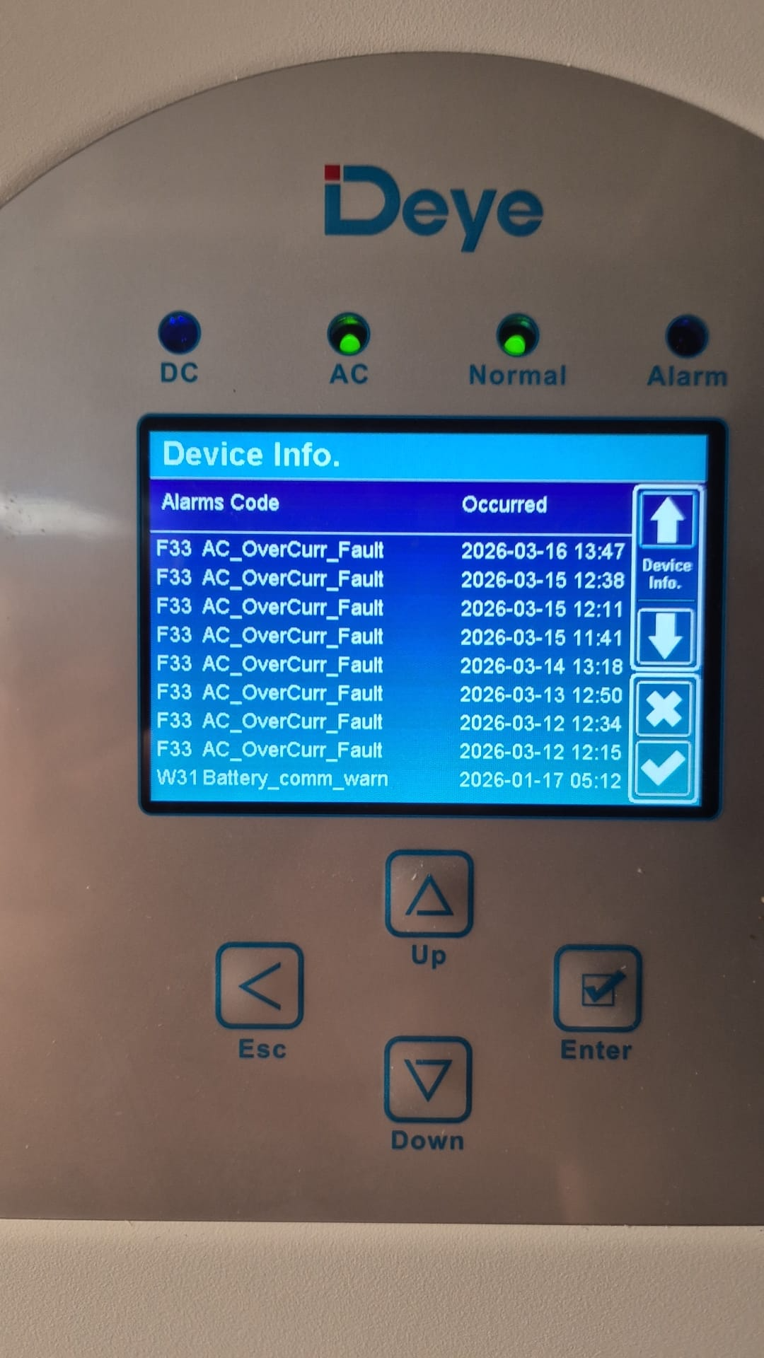 フィールドサービスでは、最も迅速な想定が報われることはほとんどありません。一見すると不思議なアラームも、電気経路が分かれば普通であることがよくあります。 F33 はまさにそのカテゴリーに属します。一部の Deeye ハイブリッド インバータ ファミリでは、コードは AC_OverCurr_Fault としてリストされます。他のファミリーでは、番号付けはわずかに異なりますが、実際的な教訓はほとんど同じです。マシンがイベントを誤って報告したと結論付ける前に、AC 側から始めてください。